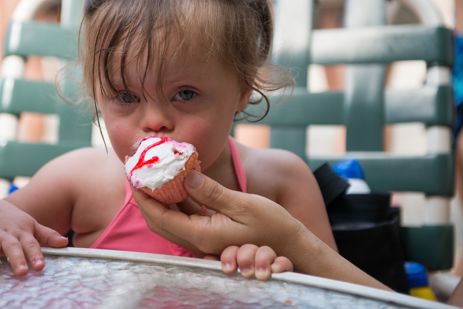 While we had a huge gathering for Ruby's first birthday, this mama is not one to pull something like that off more than once every few years. Add to that, an already busy schedule for the the weekend of Ruby's second birthday led us to keeping things very low-key. We went to the pool after her nap and brought cupcakes for anyone who wanted to sing to the birthday girl.